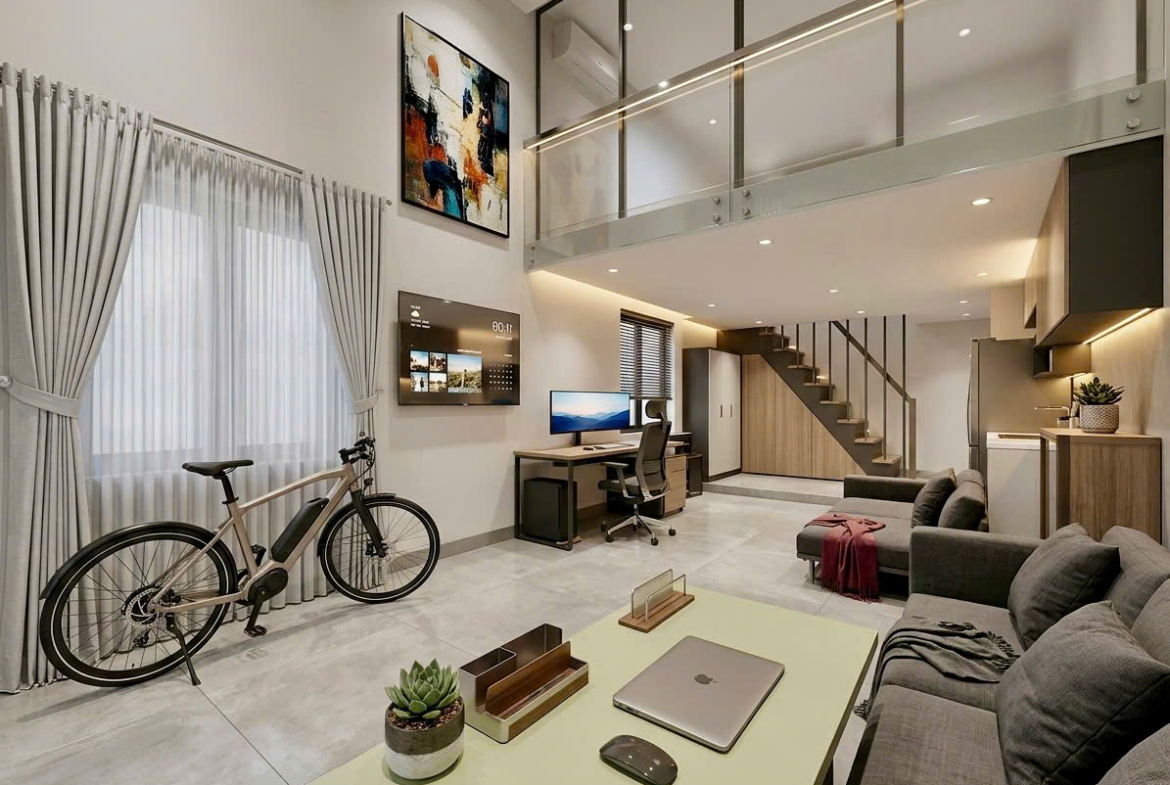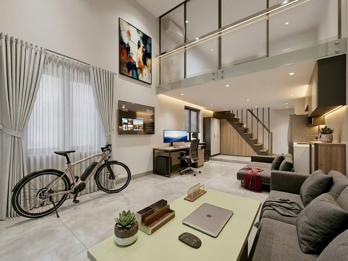 - Diện tích 55m2 (3.8x15)m.